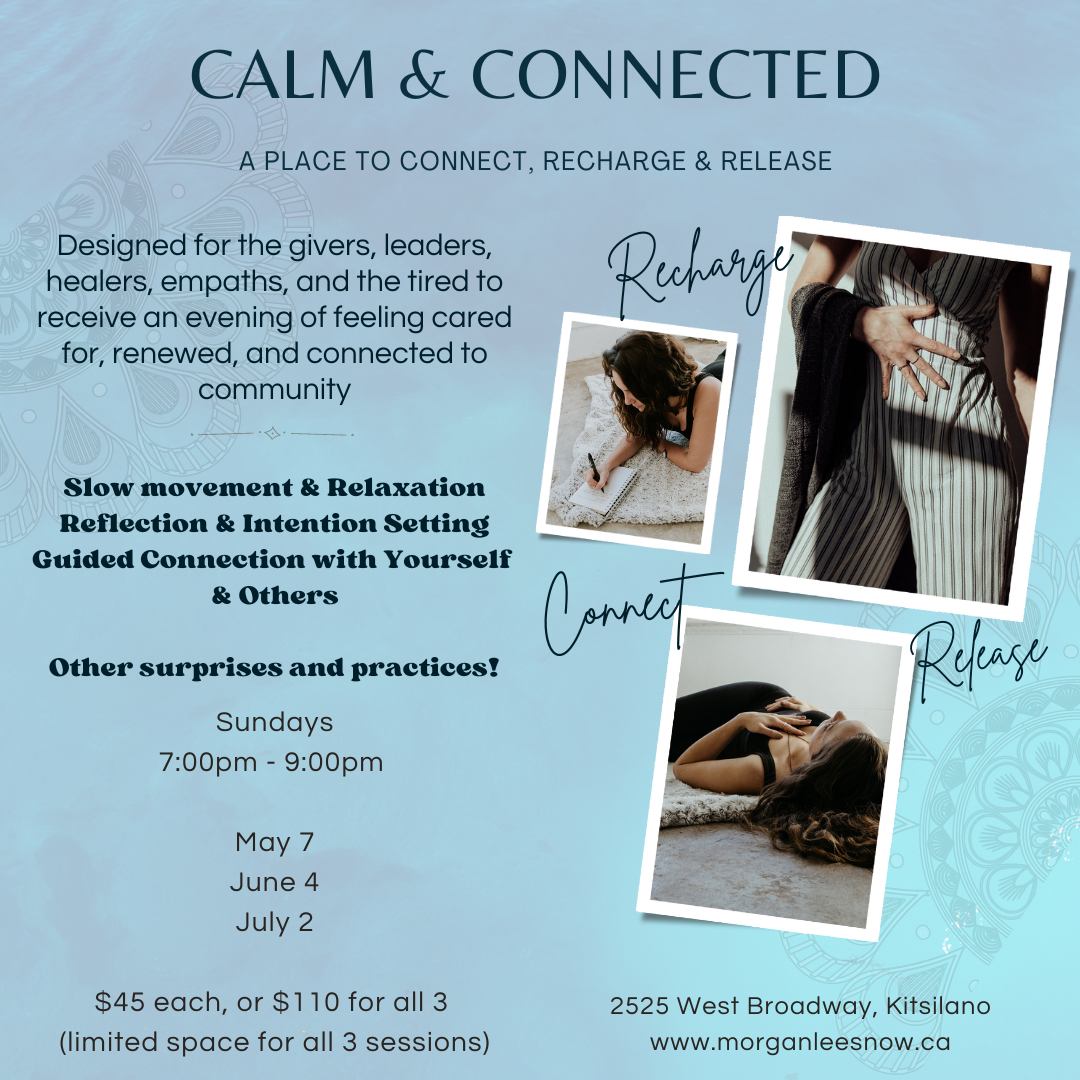• Connect with community who is looking to connect with others and deepen their ability to experience of calm while exploring their own awareness and relationship to themselves with curiosity and authenticity